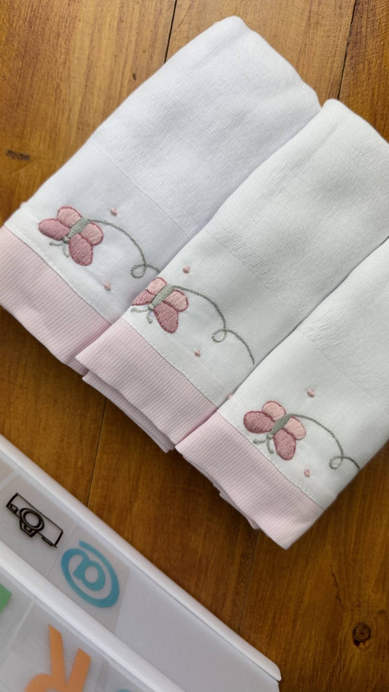 Kit 3 Fraldas de Ombro Bordadas a Mão Borboletas