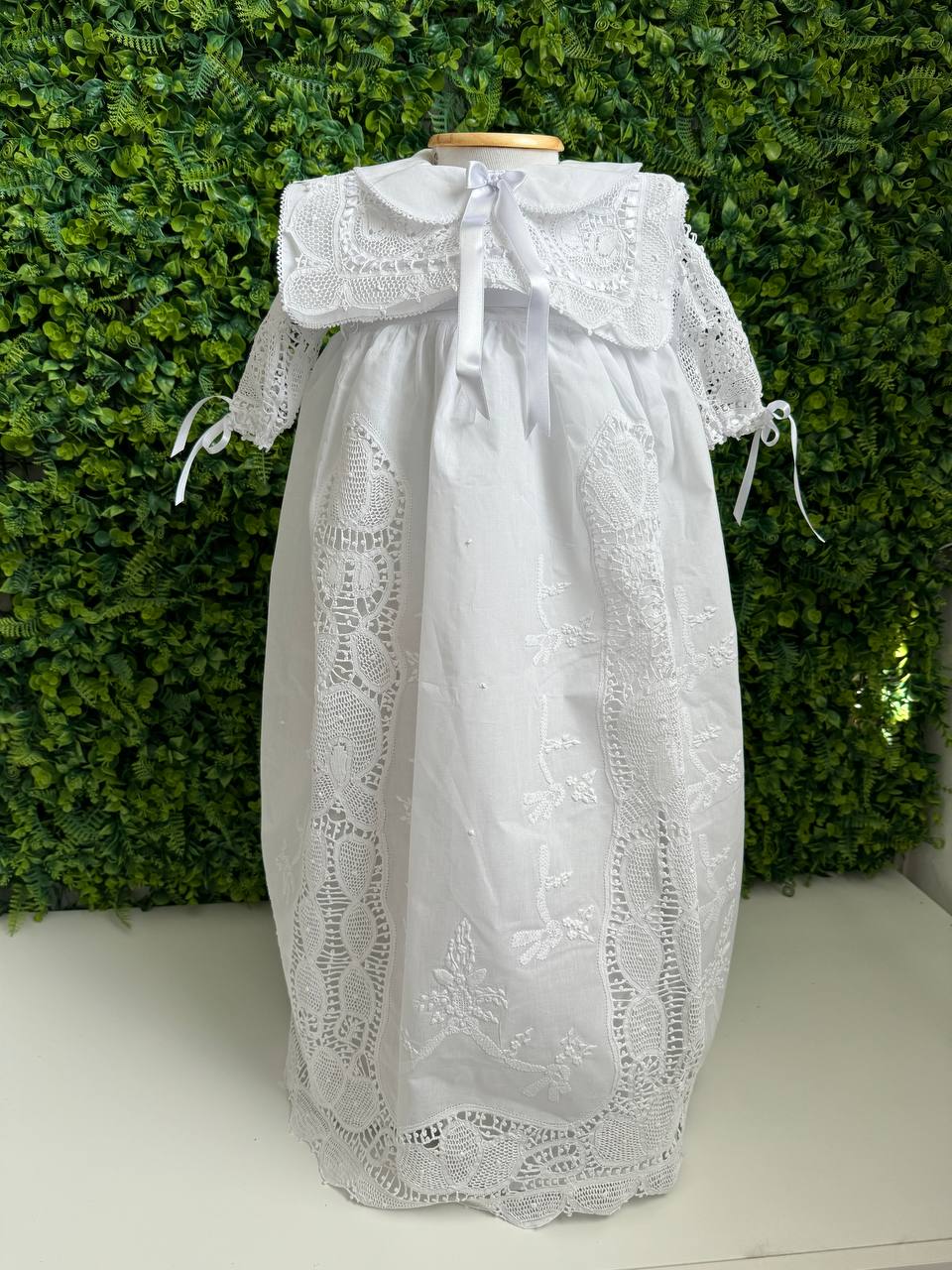 Peças em renascença e bordadas a mão para bebês e crianças.